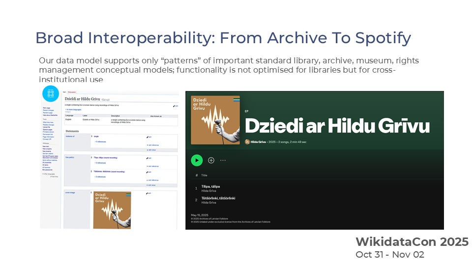 These projects demonstrate that Wikibase can combine semantic interoperability with knowledge sovereignty, a crucial requirement for representing the diverse, often community-generated folklore and folk-music heritage that HH oversees.